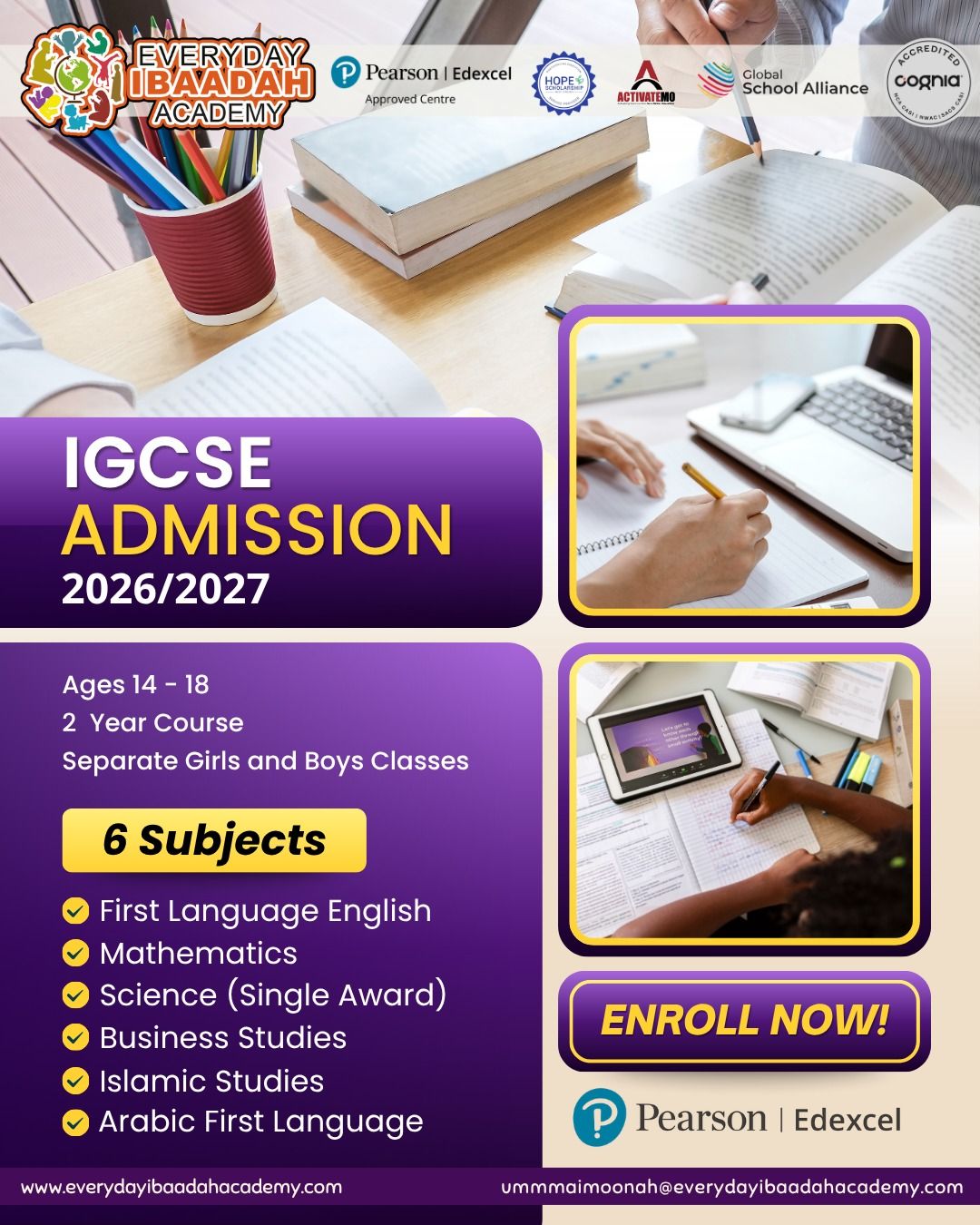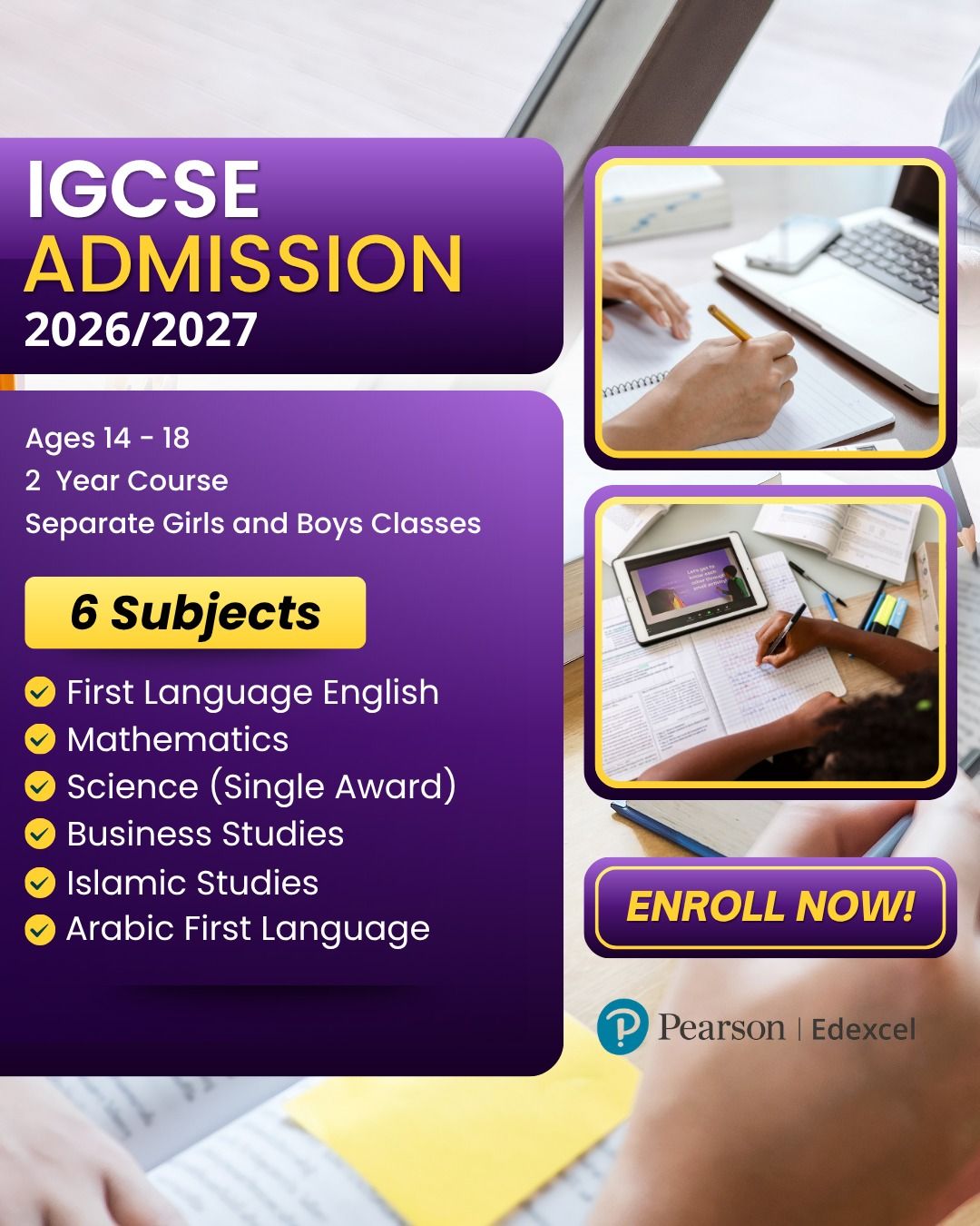 Students enrolled with us can work towards earning a US High School Diploma or IGCSE certification.